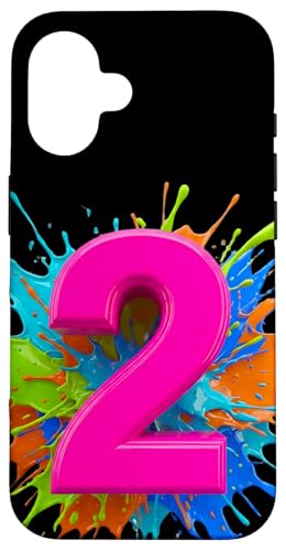 2ème Anniversaire Motif éclaboussures de Peinture pour Enfants Filles garçons 2 Ans Coque pour iPhone 16