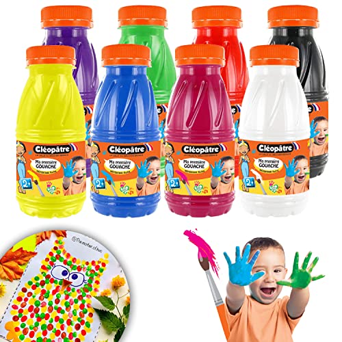 CLEOPATRE – Ma Première Gouache Baby 2-EN-1 - Peinture au Doigt Lavable pour Enfant Dès 2 Ans – 8 Couleurs – Pour Peindre au Pinceau et au Doigt - 250 ml