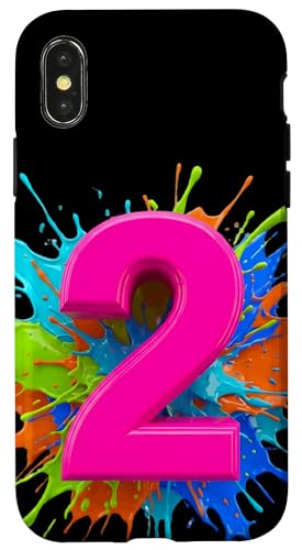 2ème Anniversaire Motif éclaboussures de Peinture pour Enfants Filles garçons 2 Ans Coque pour iPhone X/XS