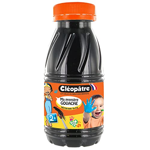 CLEOPATRE Noir 250ml première Gouache BABY 2-en-1-Peinture au doigt lavable pour enfant dès 2 ans Flacon