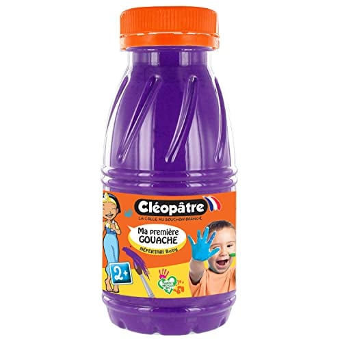 CLEOPATRE Violet 250ml première Gouache BABY 2-en-1-Peinture au doigt lavable pour enfant dès 2 ans Flacon