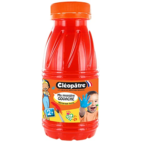 CLEOPATRE Rouge Vif 250ml première Gouache BABY 2-en-1-Peinture au doigt lavable pour enfant dès 2 ans Flacon