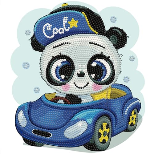 DIAMOND DOTZ- Panda im Auto Original 5D DOTZ Box Cool Car, créatif avec 2 849 Pierres de mosaïque de Diamant, Peinture d'environ 22 x 22 cm, kit Complet pour Enfants à partir de 8 Ans, Bleu, DBX.038