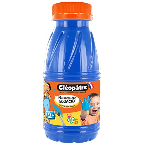 CLEOPATRE Bleu Primaire 250ml première Gouache BABY 2-en-1-Peinture au doigt lavable pour enfant dès 2 ans Flacon