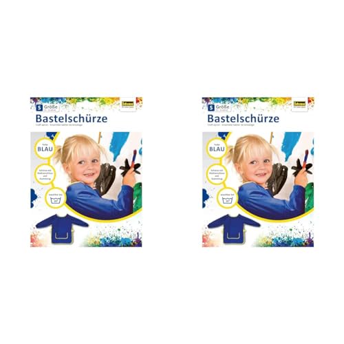 Idena 611183 - Tablier de bricolage pour enfants de 5 à 6 ans avec manches longues et fermeture velcro, en bleu, idéal pour la peinture, le bricolage, la cuisine et la boue. (Lot de 2)