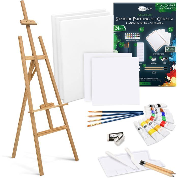 Artina 24 pcs Kit Peinture Acrylique avec Chevalet Bois 150 cm