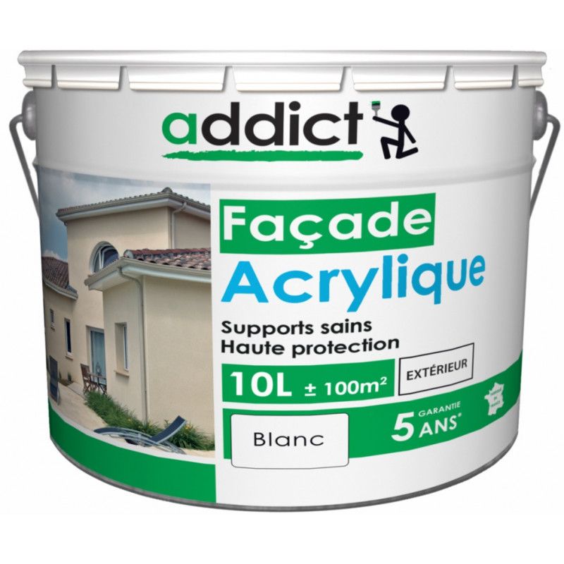 Peinture façade résine acrylique mat velouté Blanc 10L ADDICT supports sains Haute protection