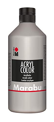 Marabu 12010075082 – Acryl Color Argent 500 ml, peinture acrylique crémeuse à base d'eau, séchage rapide, résistante à la lumière, imperméable, à appliquer avec pinceau et éponge sur toile, papier et