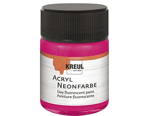 Kreul 77563 - Peinture acrylique néon, 50 ml verre rose néon, peinture acrylique fluorescente - luminescente à base d'eau, crémeuse semi-couvrante avec luminosité intense sur fond blanc