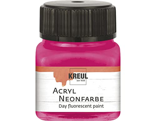 KREUL 77263 - Peinture acrylique néon, 20 ml verre rose néon, peinture acrylique fluorescente - luminescente à base d'eau, crémeuse semi-couvrante avec luminosité intense sur fond blanc