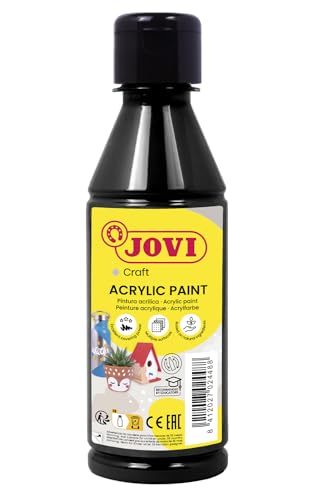 Jovi - Peinture Acrylique 250ml, Couleur Noir, Haut Pouvoir Couvrant, S'applique Facilement sur n'importe Quelle Surface, sans Gluten (68030)