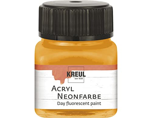Kreul 77262 - Peinture acrylique néon, 20 ml verre orange néon, peinture acrylique fluorescente - luminescente à base d'eau, crémeuse semi-opaque avec luminosité intense sur fond blanc