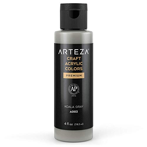 ARTEZA Peinture acrylique artisanale, A002 Gris Koala, bouteilles de 118 ml, à base d'eau, mélangeable, peintures acryliques mates pour des projets d'art et de bricolage sur toute surface