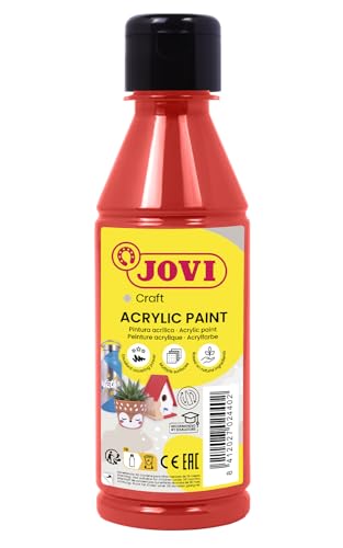 Jovi - Peinture Acrylique 250ml, Couleur Rouge, Haut Pouvoir Couvrant, S'applique Facilement sur n'importe Quelle Surface, sans Gluten (68007)