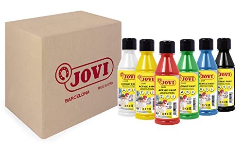 Jovi - Peinture acrylique, 6 pots de 250ml, Couleurs primaires, Haut pouvoir couvrant, Facile à appliquer sur toute surface, Sans gluten (680/6A)