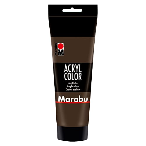 Marabu 12010025045 – Acryl Color brun foncé 225 ml, peinture acrylique crémeuse à base d'eau, séchage rapide, résistante à la lumière, imperméable, à appliquer avec pinceau et éponge sur toile, papier