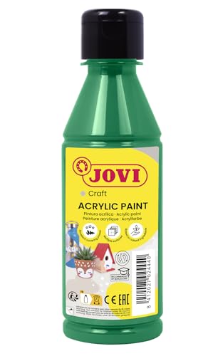 Jovi - Peinture Acrylique 250ml, Couleur Vert Foncé, Haut Pouvoir Couvrant, S'applique Facilement sur n'importe Quelle Surface, sans Gluten (68019)