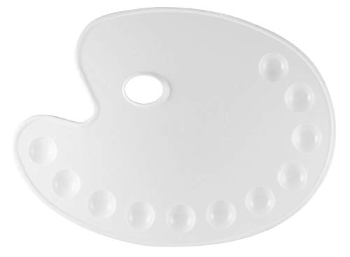 KREUL 4174 - Palette de mélange en plastique, env. 35 x 27 cm, blanc, ovale avec 11 cavités et trou de poignée, pour peinture acrylique et aquarelle