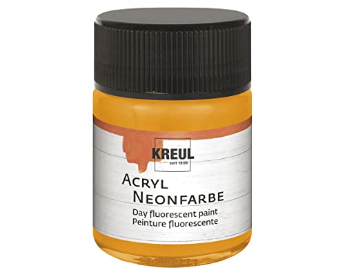 Kreul 77562 - Peinture acrylique néon, 50 ml verre orange néon, peinture acrylique fluorescente - lumière du jour à base d'eau, crémeuse semi-opaque avec luminosité intense sur fond blanc