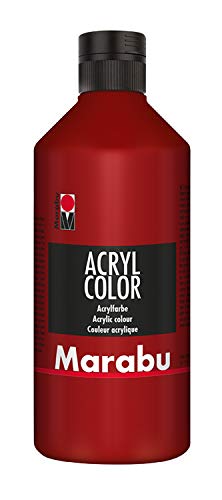 Marabu 12010075038 – Acryl Color rouge rubis 500 ml, peinture acrylique crémeuse à base d'eau, séchage rapide, résistante à la lumière, imperméable, à appliquer avec pinceau et éponge sur toile,