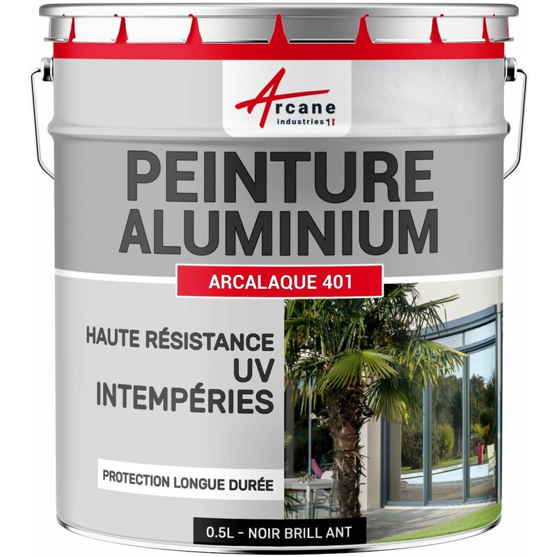Arcane Industries - Peinture aluminium pour fenêtre, veranda et portail - 0.5 l Noir Brillant - ral 9005