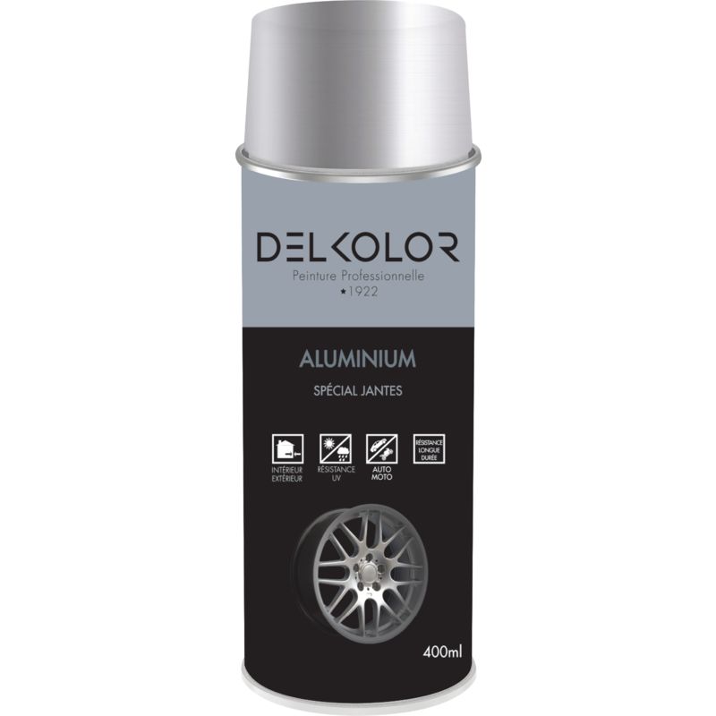 Delkolor - Peinture Aluminium Spéciale Jantes en Aérosol - 400ml Couleur: ral 9006 aluminium blanc