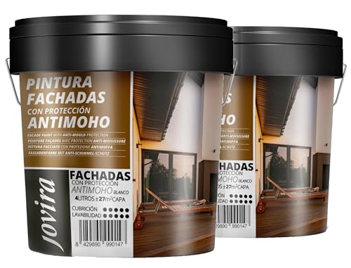 JOVIRA PINTURAS Peinture Façades Anti-Moisissures, imperméable et anti-fissures. (2x4 Litres, Blanc)