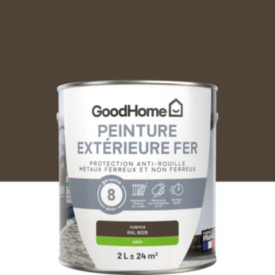 Peinture fer extérieur anti-rouille marron cuenca RAL 8028 satin GoodHome 2 L