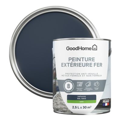 Peinture extérieure fer anti-rouille GoodHome RAL 5003 bleu narbonne satin 2.5L