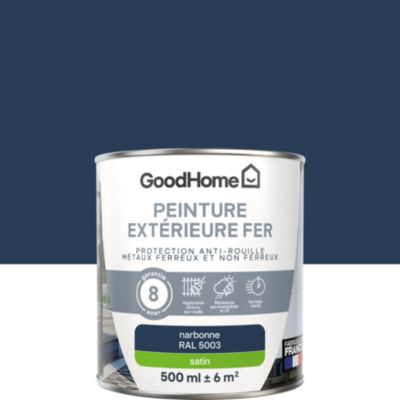 Peinture fer extérieur anti-rouille bleu narbonne satin GoodHome 0.5 L
