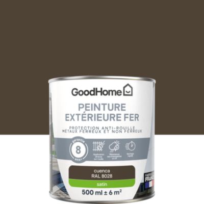 Peinture fer extérieur anti-rouille marron cuenca RAL 8028 satin GoodHome 0.5 L