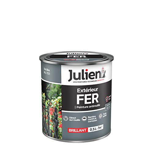 Julien Peinture Fer Anti-Rouille Brillant - Portes, grilles, portails, mobilier de jardin en métal - Gris Bleu 0,5 L