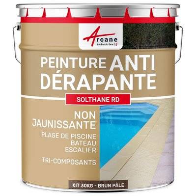 Peinture antidérapante sol extérieur escalier bateau carrelage béton bois métal SOLTHANE RD Brun pale ral 8025 Kit 30kg jusqu'a 62m2 pour 2 couches