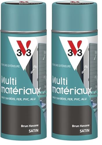 V33 - Aérosol - Bombe Peinture Extérieure Multi-matériaux - Peinture Antirouille - Mobiliers, Fenêtres, Portails, Grilles - Séchage Rapide et Tendu Bon - Teinte Brun havane Satin 400ml (Lot de 2)