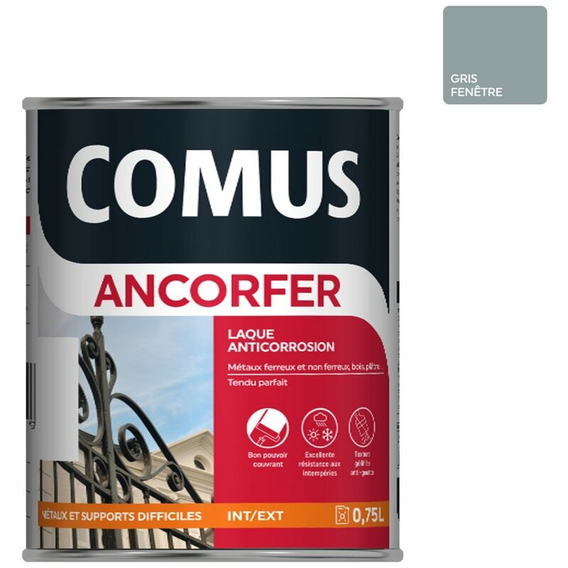 Ancorfer brillant 0.75L Gris fenêtre - Peinture-laque antirouille pour métaux et autres supports Comus