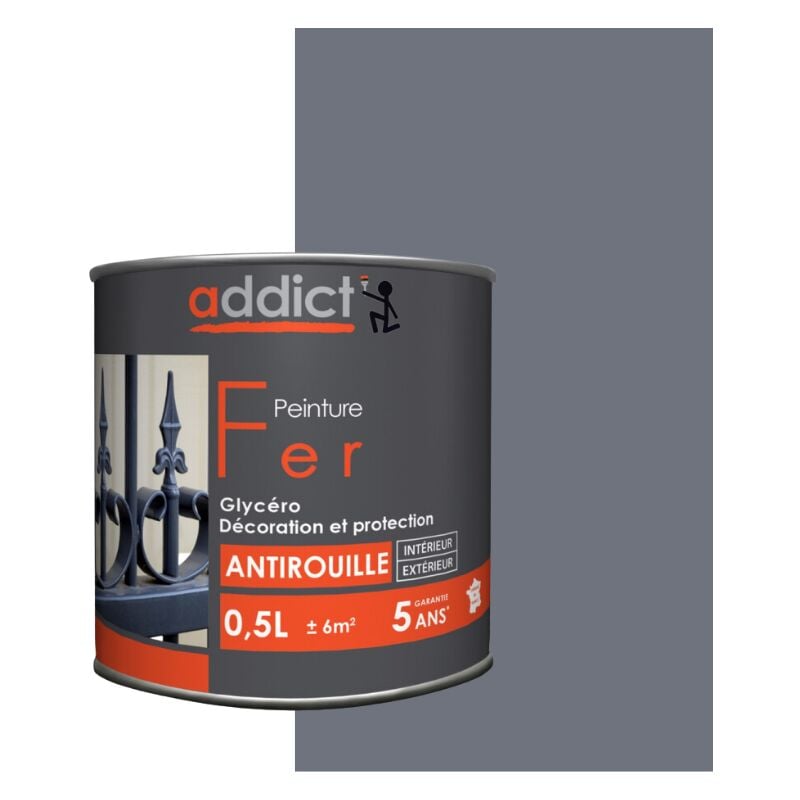 Addict - Peinture fer glycéro antirouille, gris anthracite, 0,5 litre intérieur et extérieur