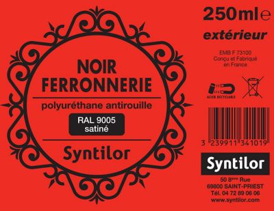 Peinture extérieure fer antirouille noir satiné Syntilor 250 ml