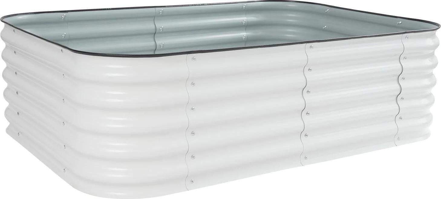 Jardinière surélevée en acier - Bac à plantes métallique autonome - 195 × 60 × 43 cm - Galvanisé et revêtu d'aluminium - Peinture au four - Blanc/gris clair