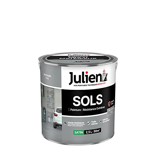 Julien Peinture Sols Extrême Intérieur et Extérieur - Chapes béton, ciment lissé, briques, asphalte, planchers et parquets - Gris Soie 0,5 L