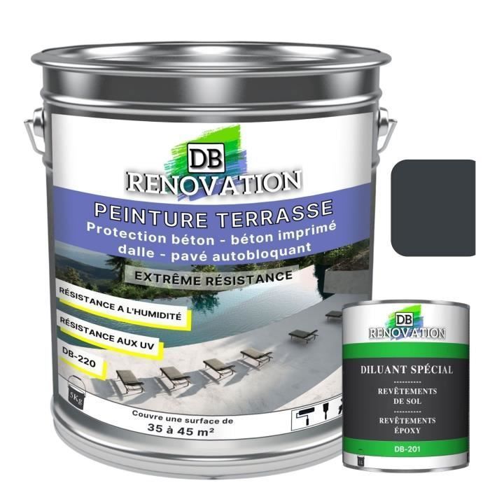 PEINTURE SOL TERRASSE DB-220 5KG Gris anthracite - Pour béton pavé - Forte protection extérieure UV - Haute imperméabilité