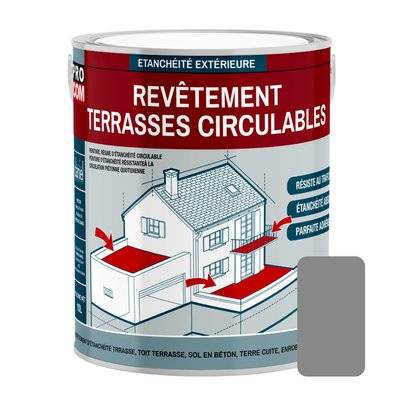 Pro Com Peinture, résine d'étanchéité terrasse circulable, balcon, sols extérieurs, béton - 2.5 litres Gris