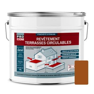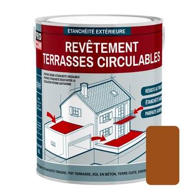 Pro Com Peinture, résine d'étanchéité terrasse circulable, balcon, sols extérieurs, béton - 10 litres Terre cuite