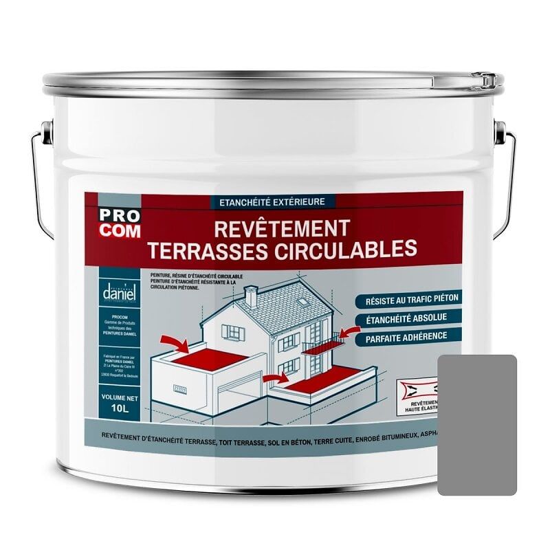 Peinture, résine d'étanchéité imperméabilisation terrasse circulable, balcon, sols extérieurs, béton, plusieurs coloris PROCOM 10 litres Gris