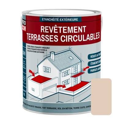 Pro Com Peinture, résine d'étanchéité terrasse circulable, balcon, sols extérieurs, béton - 2.5 litres Sable
