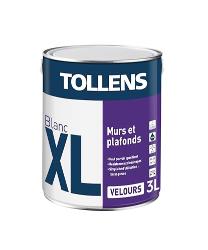 Tollens Peinture Professionnelle Blanche Velours - Spécial Séjours et Chambres XL Velours - Pour Murs et Plafonds - 3L = 30m2