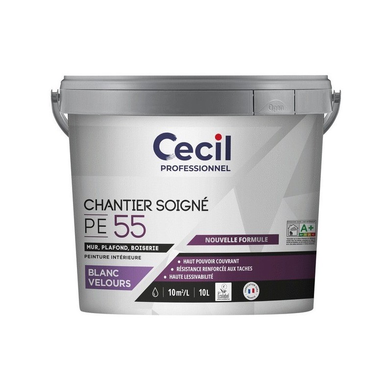 Peinture blanc velours expert pe55 supports neufs ou sains intérieur acrylique soigné eau blanc 10 m²/l 4 heure(s) 1 pot(s) de 10 litre(s) 10 litre(s)