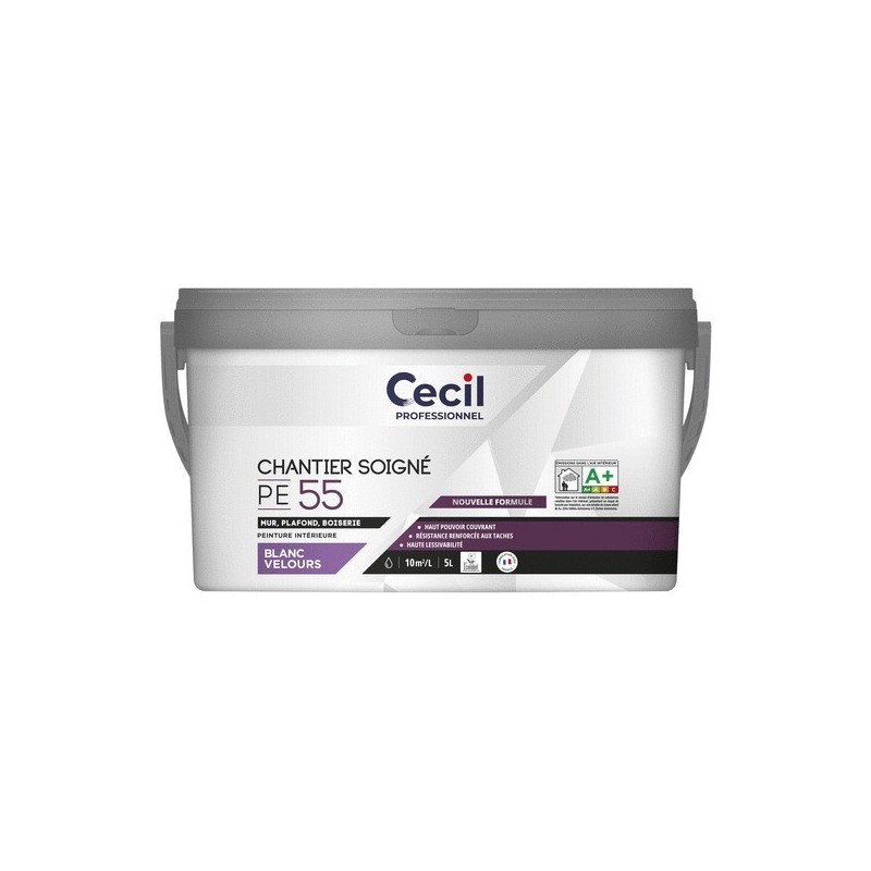Peinture blanc velours expert pe55 supports neufs ou sains intérieur acrylique soigné eau blanc 10 m²/l 4 heure(s) 1 pot(s) de 5 litre(s) 5 litre(s) v