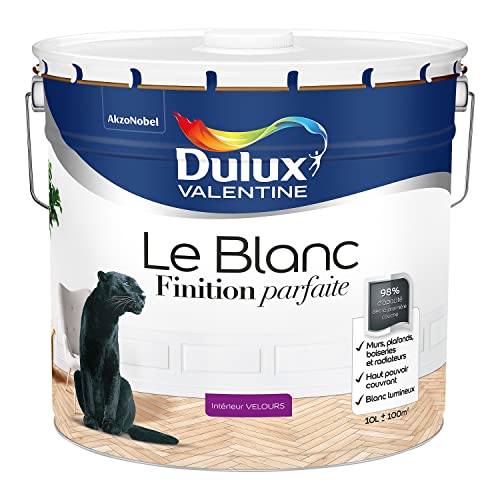 Dulux Valentine Le Blanc Finition Parfaite - Peinture Intérieure Murs, Plafonds et Boiseries - 98% d'opacité - Velours Blanc 10 L