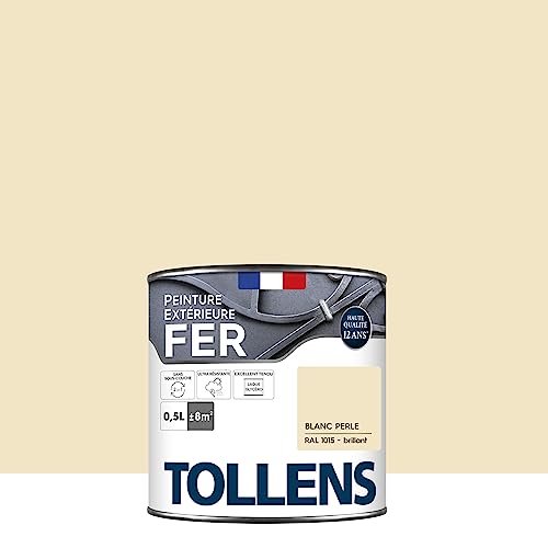 Tollens - Peinture extérieure fer 2 en 1 - Ultra Résistante - Protection antirouille - Laque Riche en Résine - Sans Sous-Couche - Entretien Facile - Brillant - Blanc Perle - 0,5L = 8m2