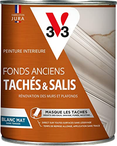V33 Peinture blanche mur et plafond mat, FOND ANCIENS TACHES & SALIS, idéal rénovation, 1L